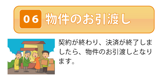 締結した売買契約に基づいて買主様へ物件をお引渡しいたします。